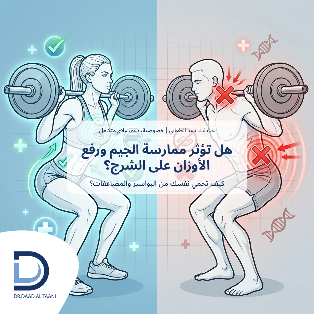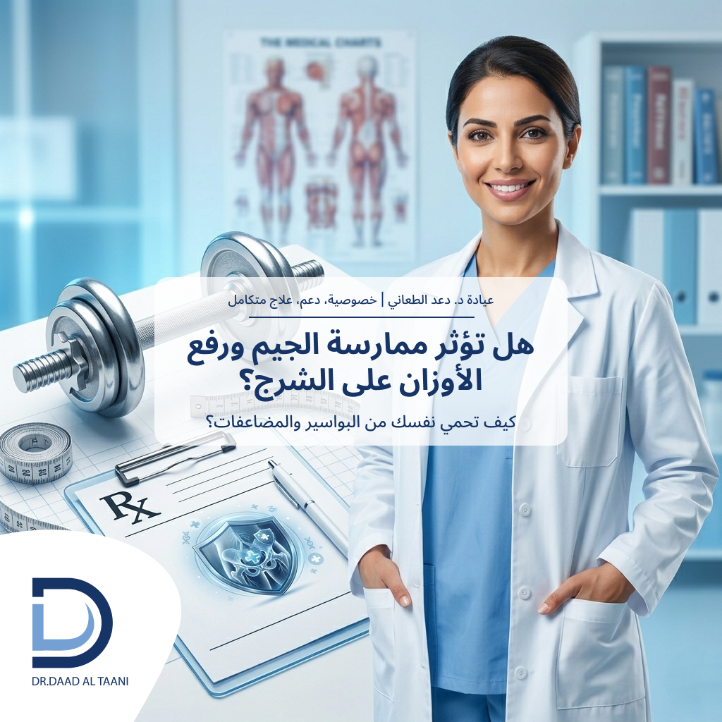 ممارسة الجيم ورفع الأوزان مفيدة للصحة، لكنها قد تؤثر على الشرج إذا تم إهمال الطريقة الصحيحة في التمرين. الالتزام بالتقنيات السليمة والاعتدال في الأوزان يقلل من المخاطر بشكل كبير. في حال ظهور أي أعراض غير طبيعية، يجب استشارة طبيب متخصص مثل د. دعد الطعاني للحصول على التقييم والعلاج المناسب.