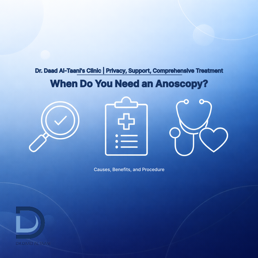 Proctoscopy (or sigmoidoscopy) is an essential medical procedure for examining the rectum and lower colon. Many patients wonder when this examination is necessary and what conditions require it. In this article, we explain the main reasons, benefits, and how proctoscopy is performed at Dr. Dhad Al-Ta’ani Clinic